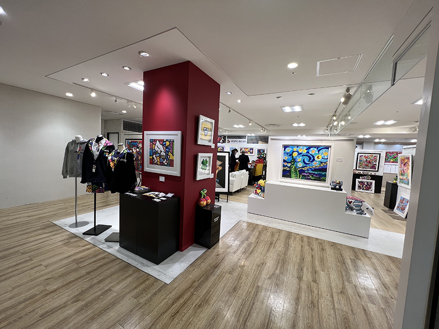 ロメロ・ブリット氏の作品を主軸にしているのはそのポップで明るい作品の素晴らしさのみならず、ロメロ氏の社会貢献活動に賛同していることも大いに関係あるだろう。