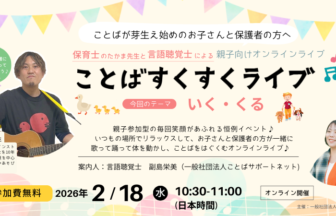 7. 親子向け ことばをはぐくむ オンラインイベント|ことばすくすくライブ♪『いく』『くる』