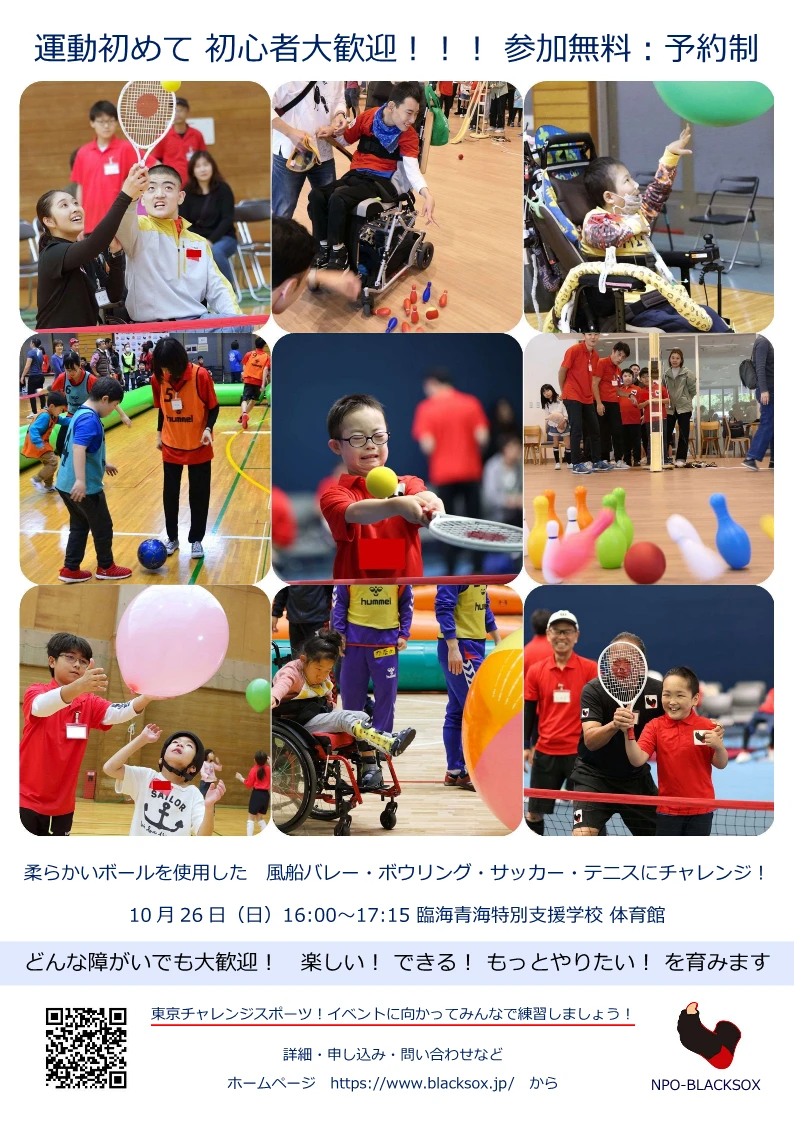 スポーツでみんなの靴下をまっ黒にする活動をしている NPO法人BLACKSOX(ブラックソックス)さんからのお知らせです!
