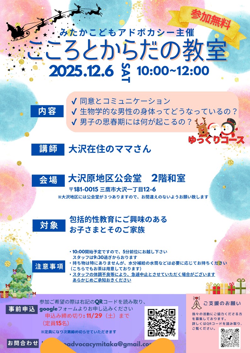 みたかこどもアドボカシーさんからのお知らせです。