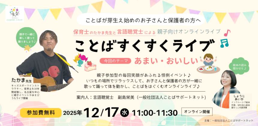 お子様のことばの育ちを応援したい保護者の方、ぜひご参加ください。
